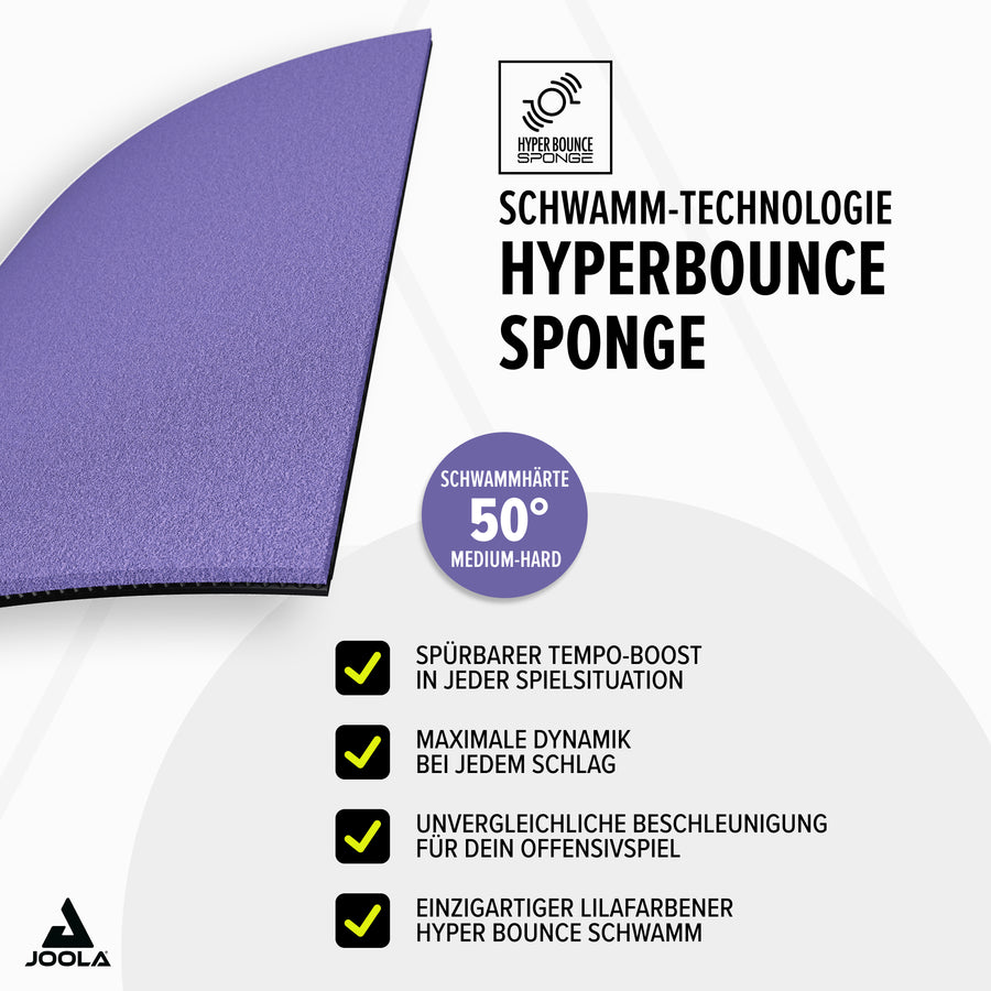 Der einzigartig lilafarbene HYPER BOUNCE Schwamm erzeugt eine bisher unerreichte Dimension von Dynamik und Beschleunigung!