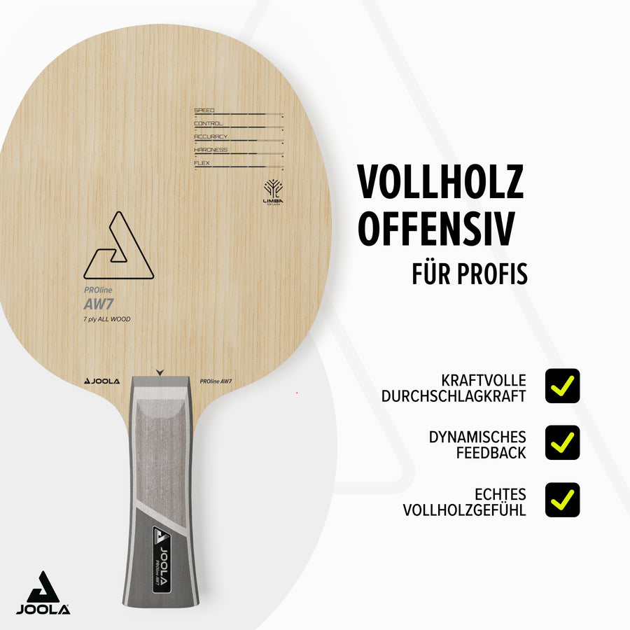 Das PROline AW7 ist die perfekte Wahl für alle Offensivspieler, die maximale Power und ein echtes Vollholzgefühl wollen. Kein Carbon, kein Schnickschnack – nur purer Tischtennisgenuss mit echtem Feedback und kompromissloser Performance.