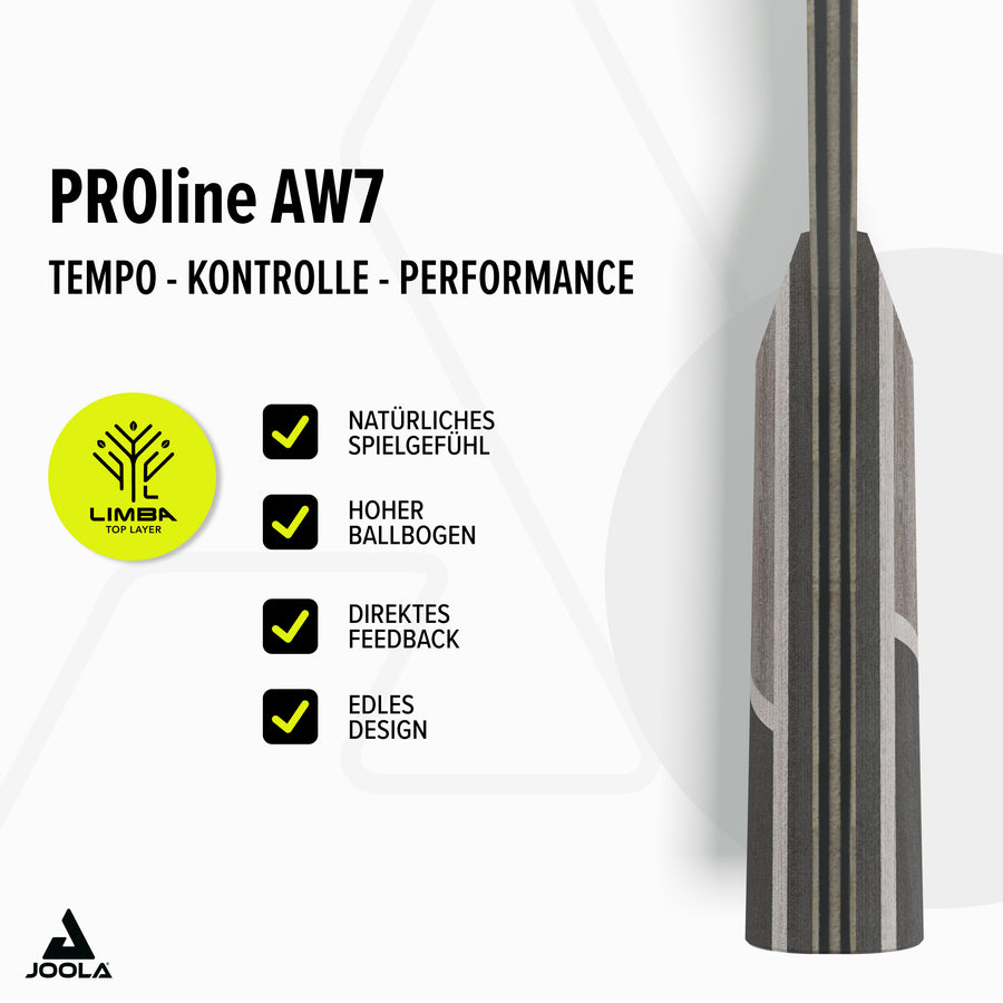 Wenn du auf kompromisslose Angriffsschläge stehst, aber das Spielgefühl eines Vollholzes liebst, ist das PROline AW7 wie für dich gemacht. Sieben fein abgestimmte Furnierschichten sorgen für ein explosives Spiel mit präziser Rückmeldung – ganz ohne Carbon, aber mit voller Power.