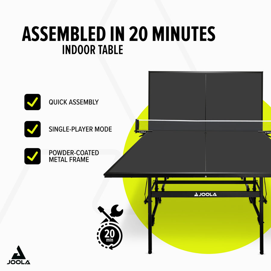 With the JOOLA BLACK 13i table tennis table, you get a high-quality, elegantly designed table that offers excellent playing characteristics and maximum stability. Thanks to the easy-to-use features and quick assembly, you can start your first match immediately and enjoy full playing fun.