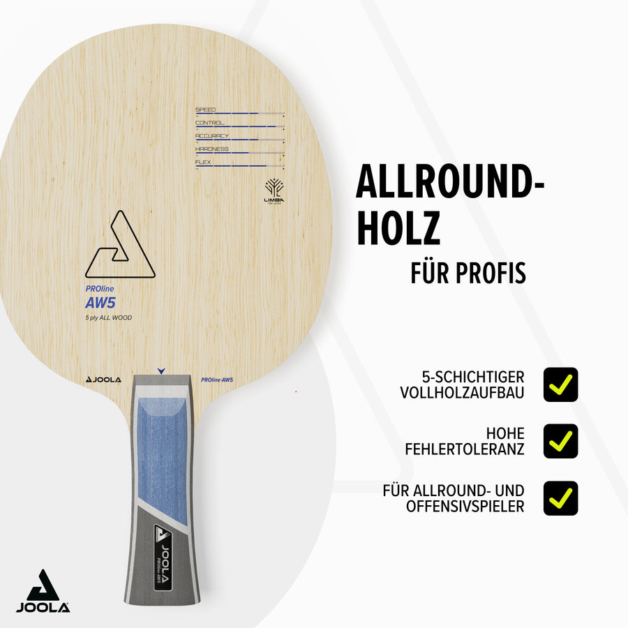 - 5-ply solid wood construction: For strong ball feedback and a flexible playing feel – ideal for versatile playing styles.
